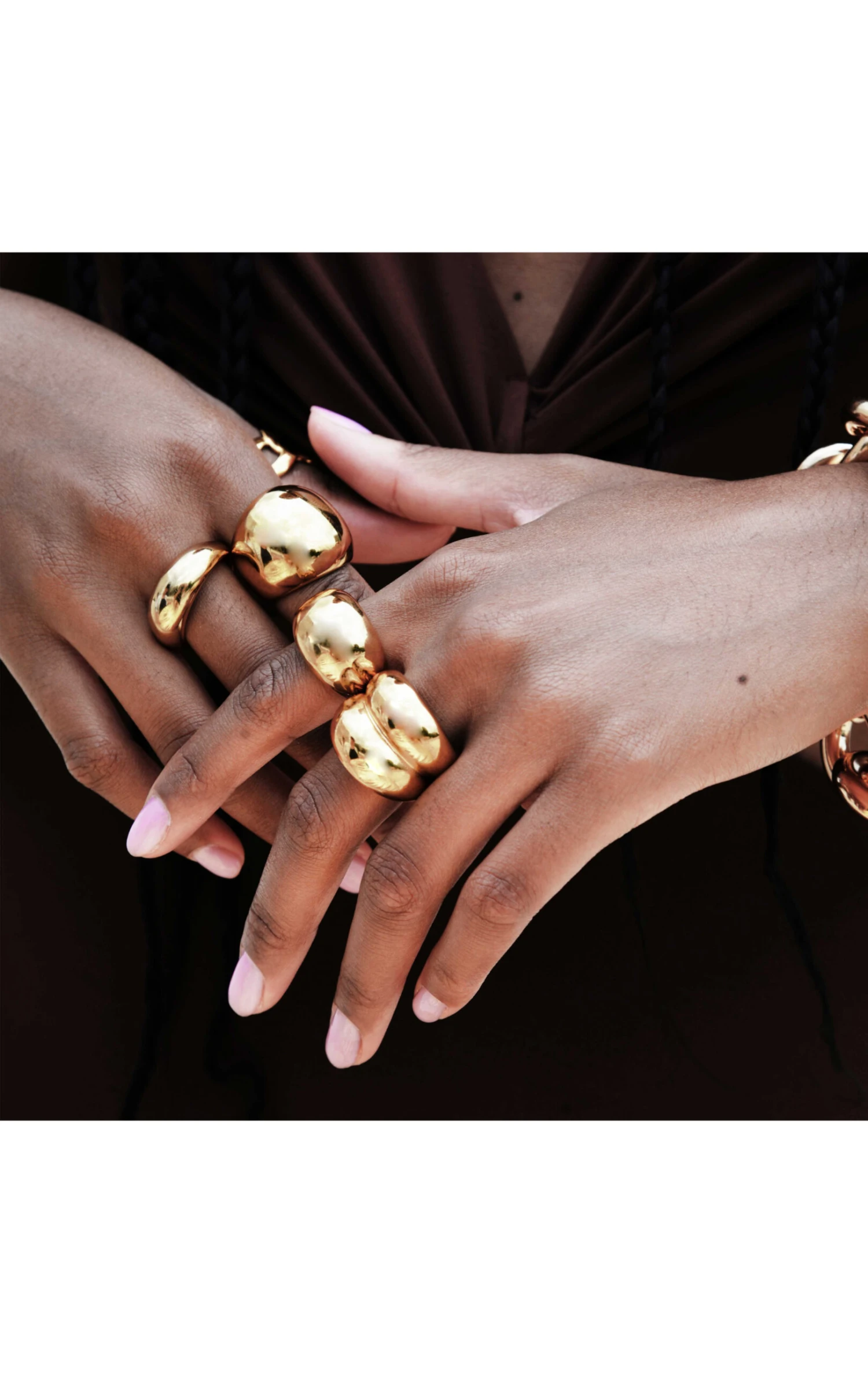 Adoptez cette bague dorĂ©e en acier inoxydable de forme jonc boule. Son look minimaliste vous permettra d’accumuler d’autres bagues pour un look Ă©lĂ©gant.