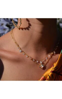 • Chaîne et pampilles en laiton doré à l’or fin 14 carats 0,3 microns.