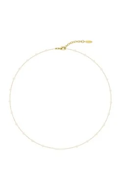 Collier ras de cou sur une chaîne chapelet, avec de ravissantes petites perles de culture irrégulières au centre. Ce très joli collier, à porter seul ou en accumulation, est une pièce aussi raffinée que romantique.